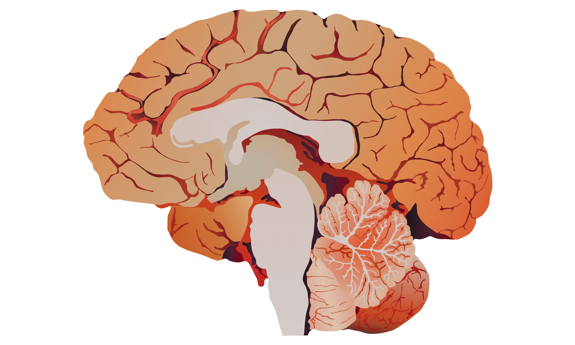 In order to test out using a portfolio-type website as an image gallery, Gill created a small group of images showing a mid-sagittal section through a human brain. These were created in the same way as the rat brain image described in this post, with an initial detailed drawing made in Illustrator and based on a photograph (shown below).