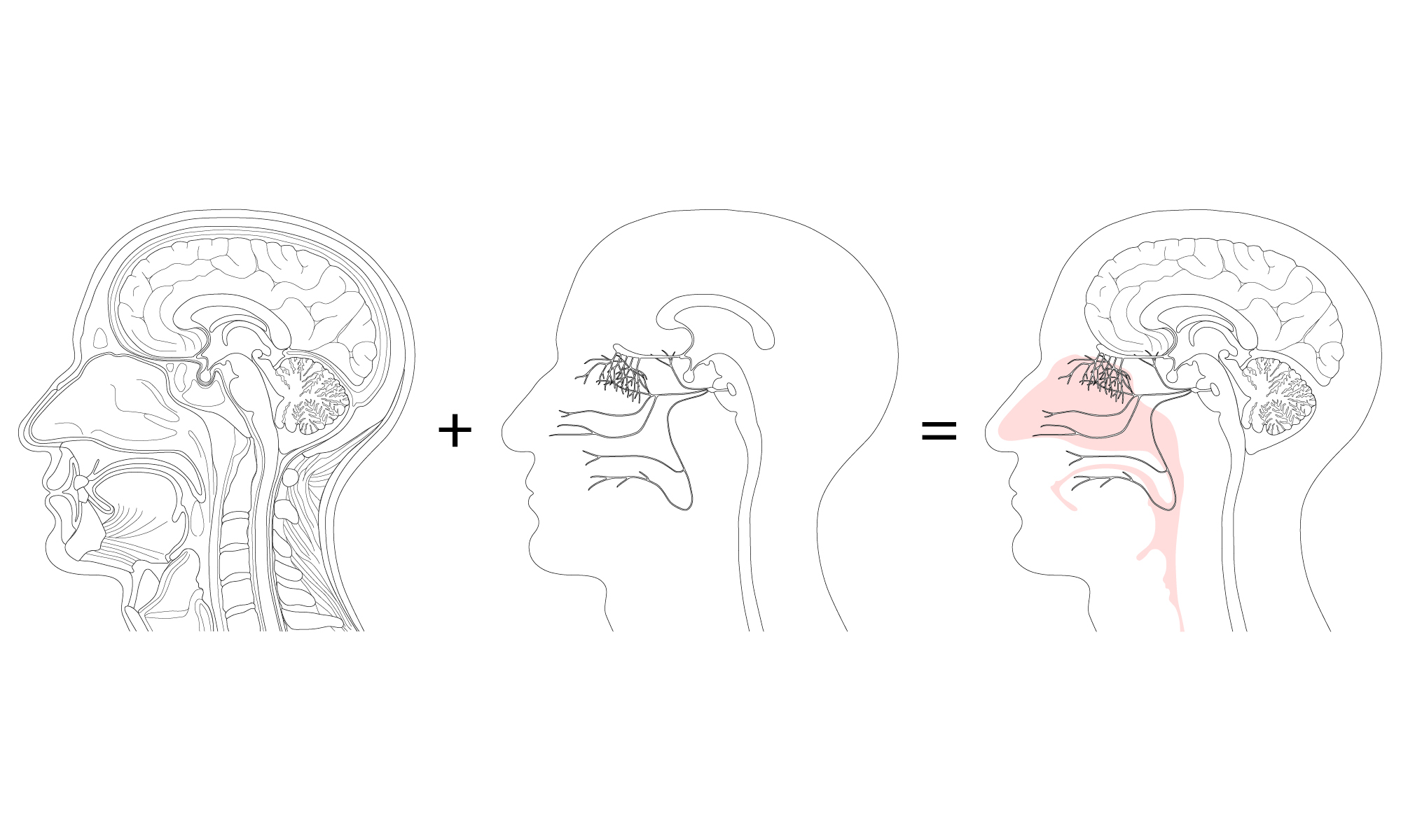Select each of the internal lines and use the backspace key to delete them, as shown below, left. You can also give the nasal cavity a colour fill and remove the black outline, to ensure that the nerves stand out more from the background, as shown below, right: