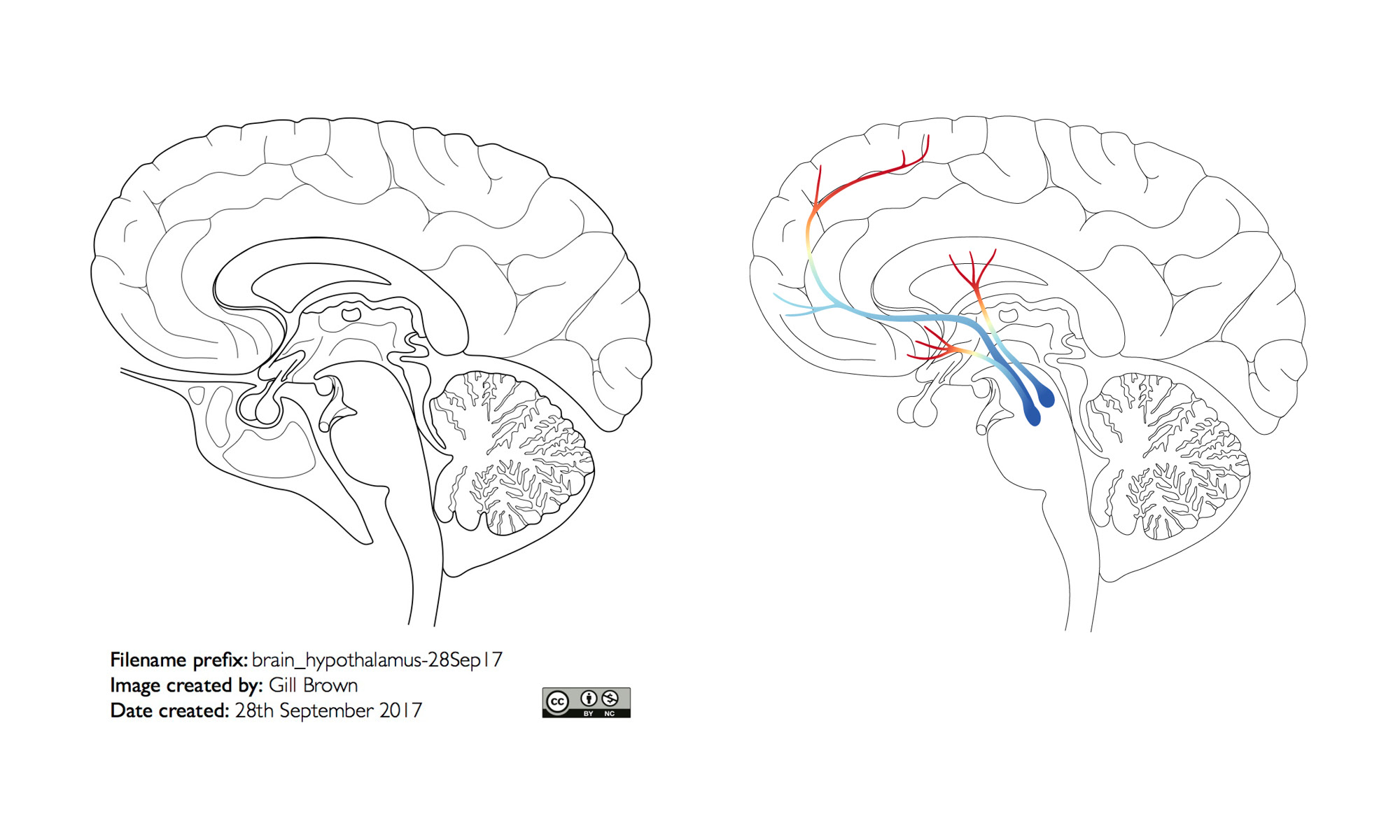 A recent requirement for a conceptual figure provides a mini case study on how to adapt a file from the online image library to suit your exact needs. Pierluigi required an image to highlight dopaminergic pathways in the brain for a journal article that had to be submitted that day. He identified one of the images on the neurographical instagram feed (image shown below left) as being the type of figure he needed. That image was re-drawn by Gill from an existing conceptual figure and so cannot be used in another article within permission from the copyright owner. However, there was already an image available in the image library that shows a very similar view of the brain (below right) and that could be adapted for Pierluigi’s article.