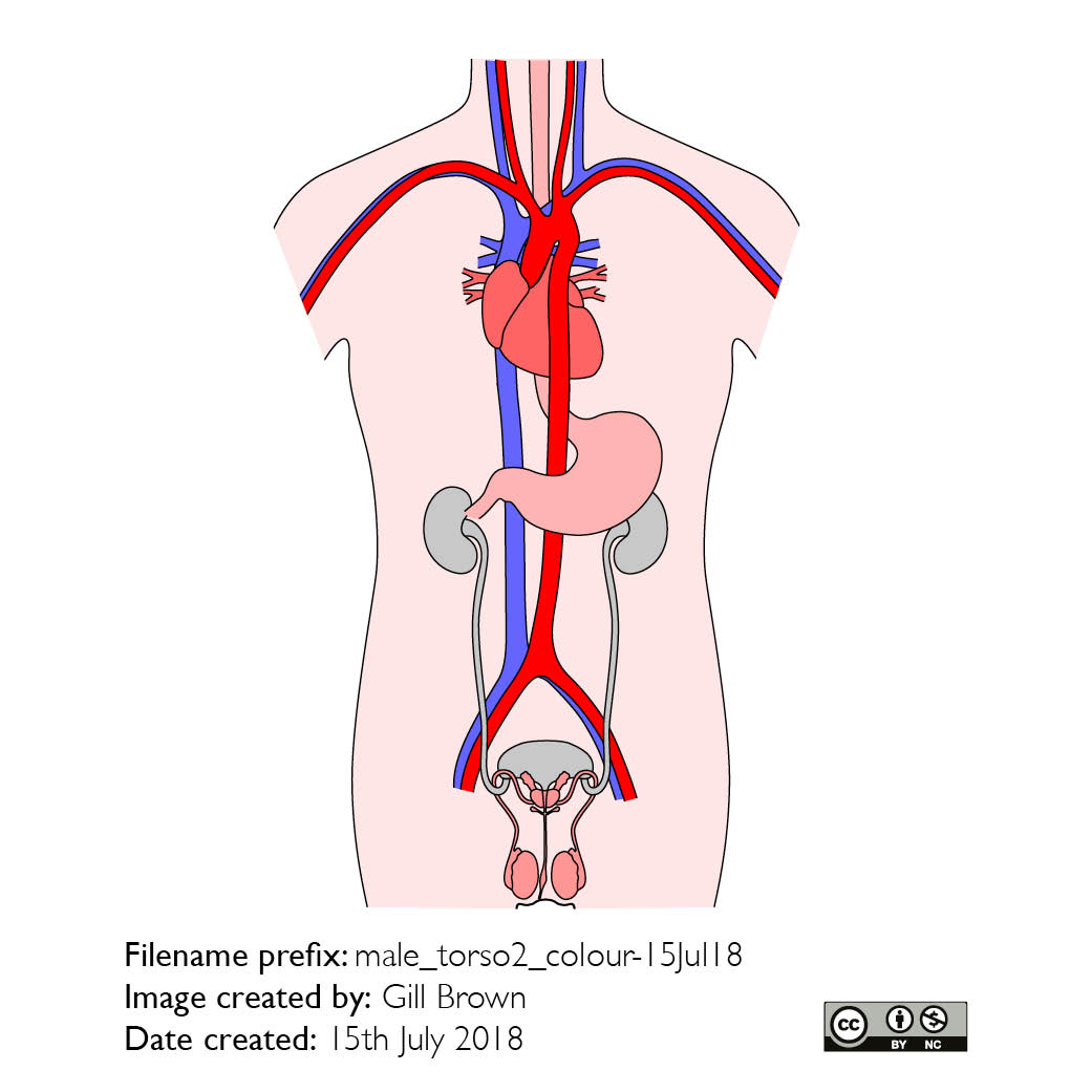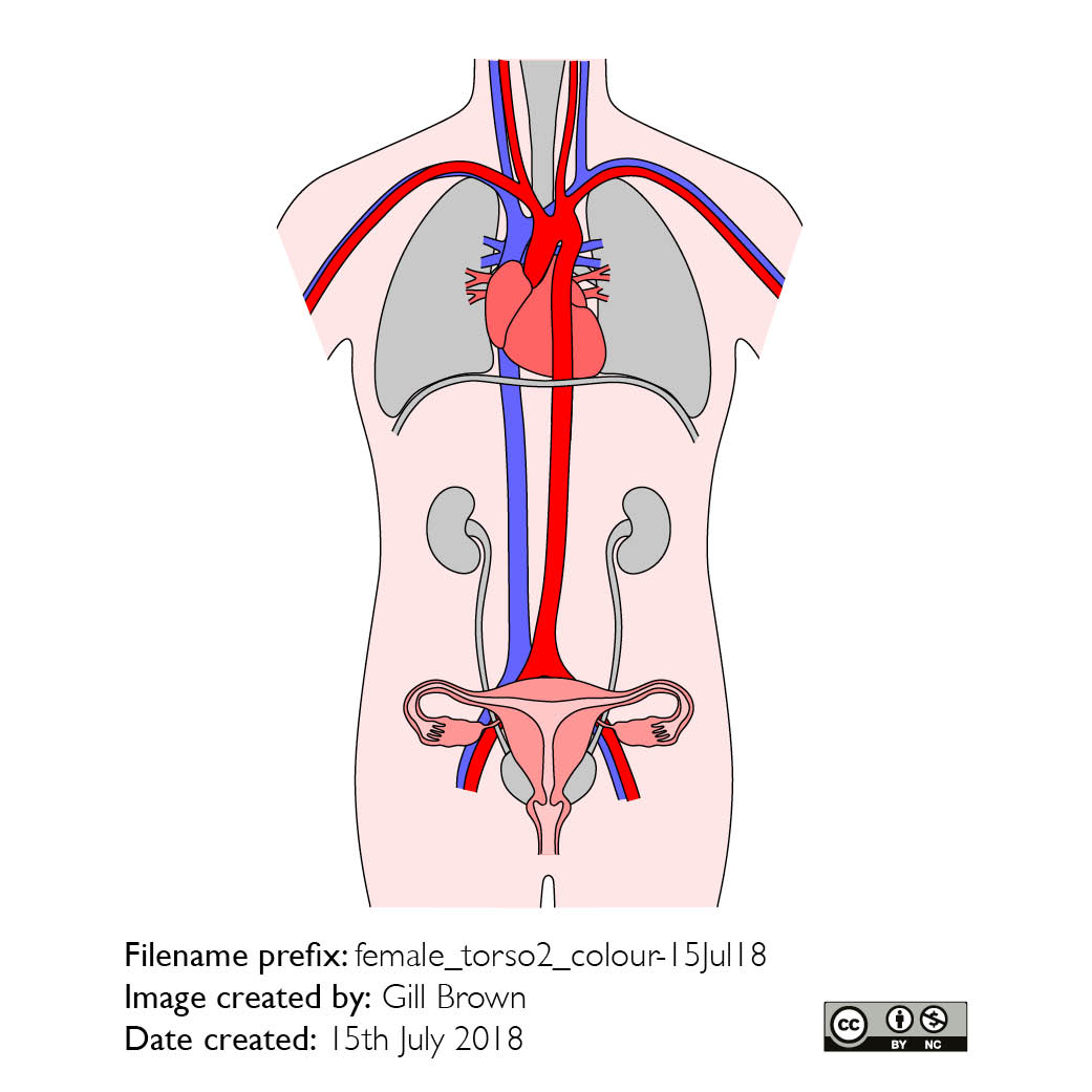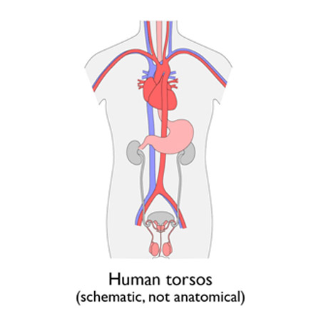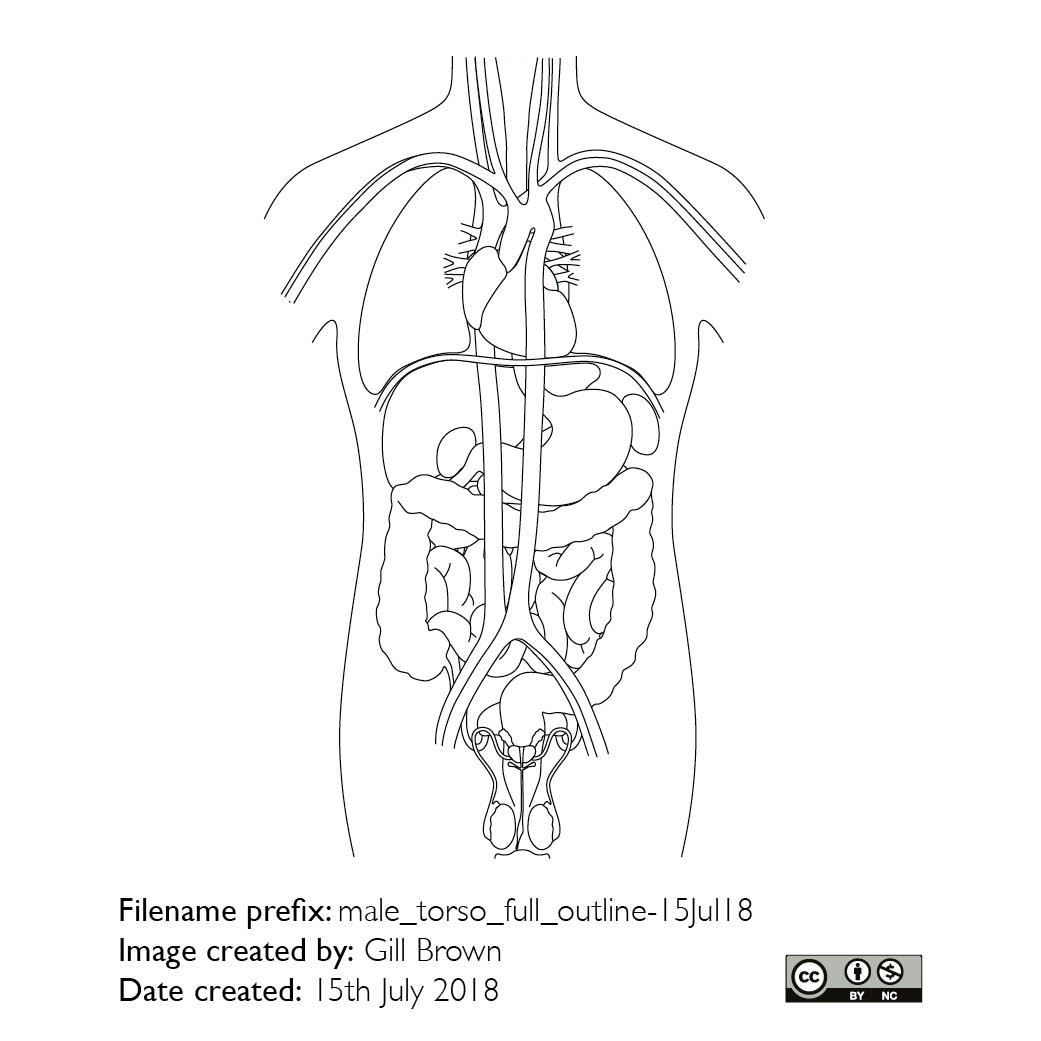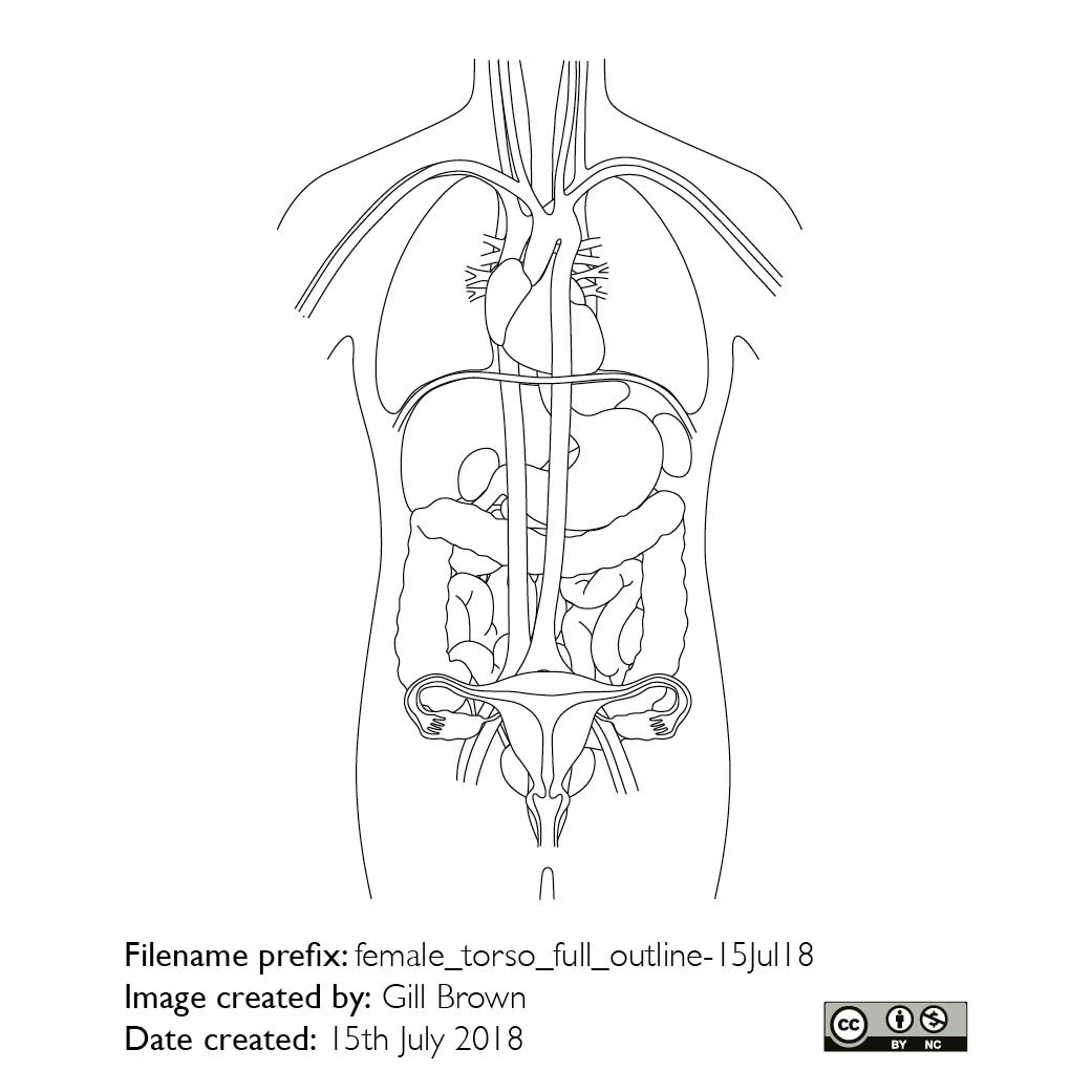 A selection of images of human torsos, showing a range of internal anatomies. The images are designed to be schematic and so are not anatomically accurate. They are also designed to be as adaptable as possible, with all of the images originating from a single Adobe Illustrator file. See this blog post for details of how this was achieved.