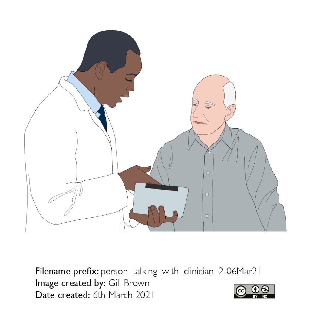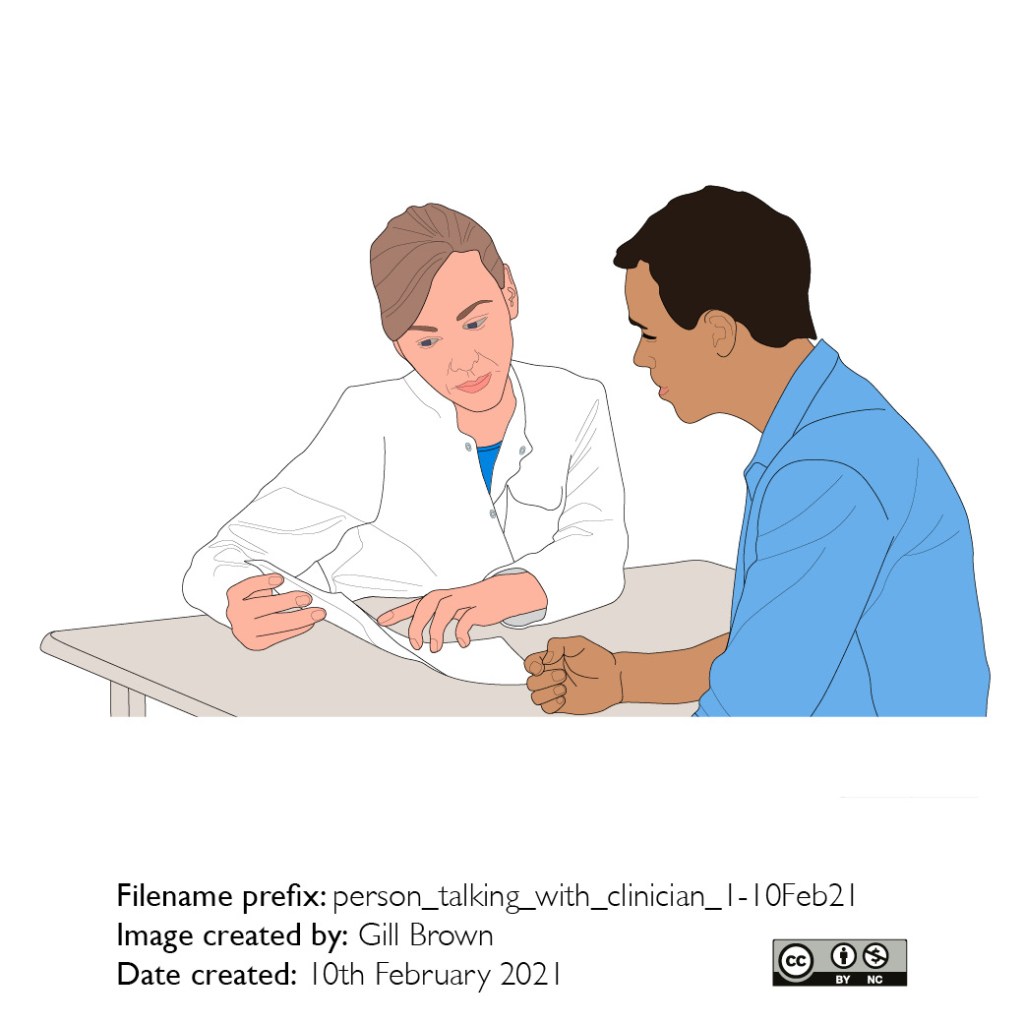 A selection of images used to illustrate the activities of clinical trial participants and their interaction with clinicians. These images were created as part of a project to produce an illustrative and modular Patient Information Sheet (PIS). See the PIS Project webpage for more details about this project and to find examples of the complete PIS.