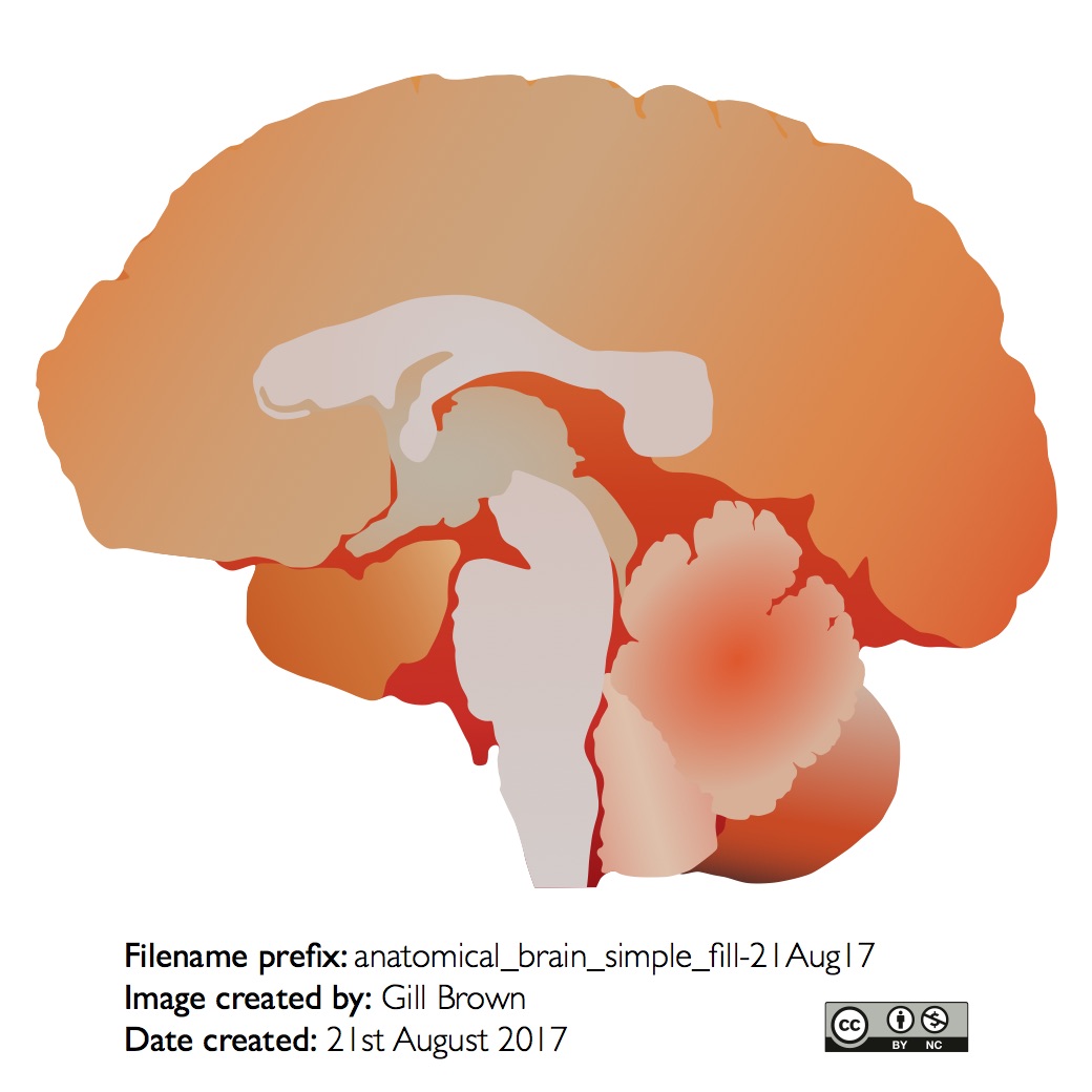 A selection of images of a human brain, all based on an anatomically correct photograph of a mid-sagittal plane.