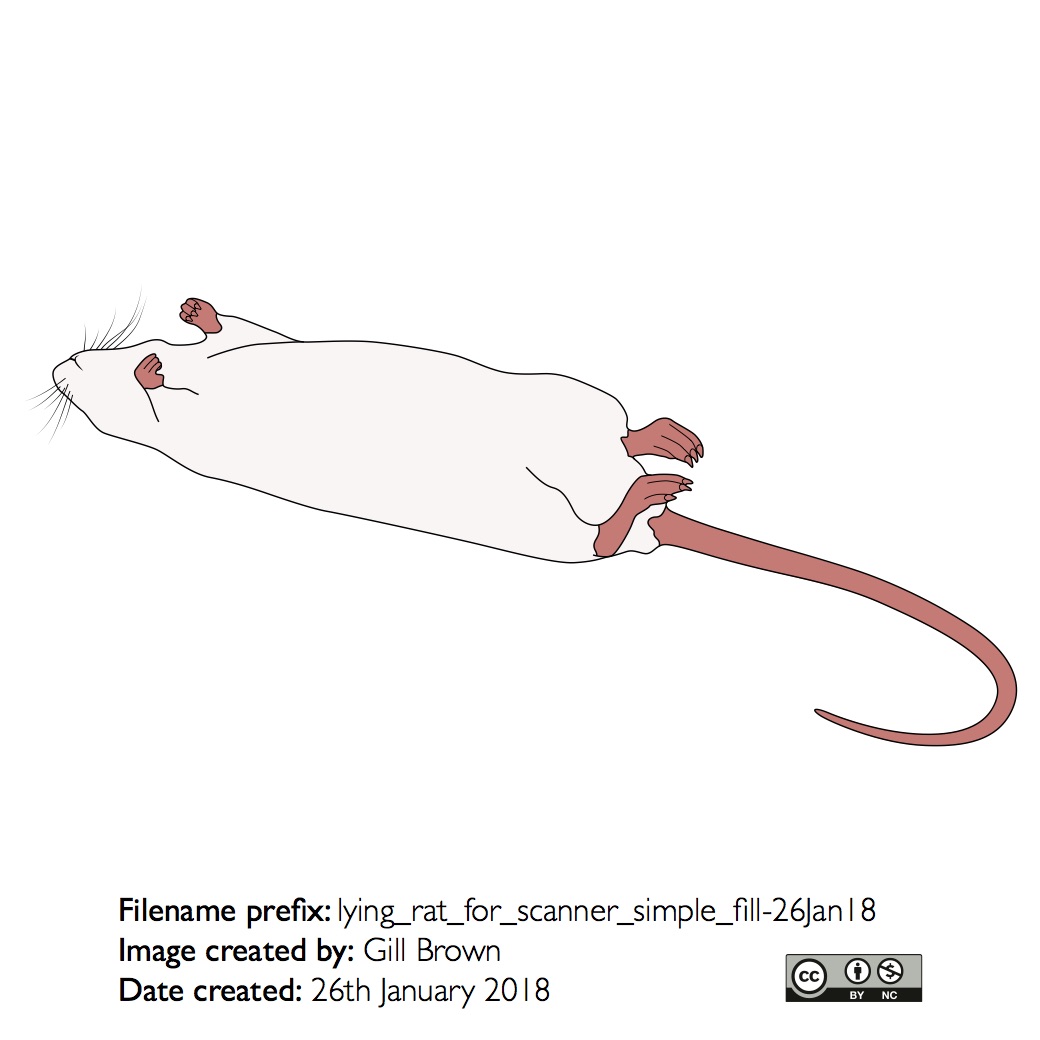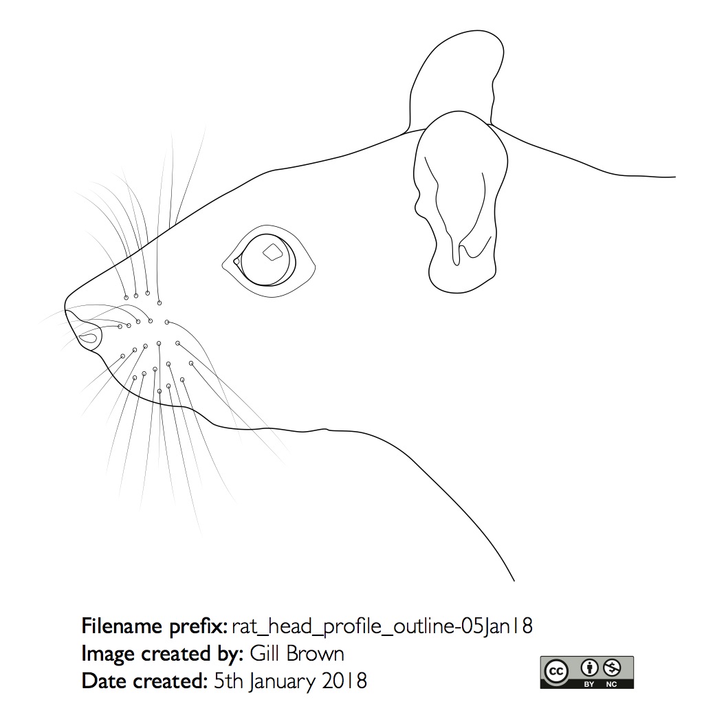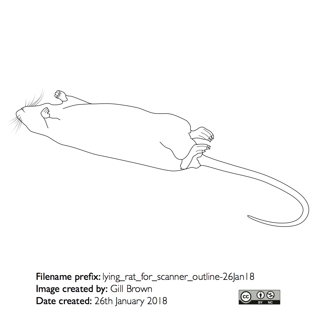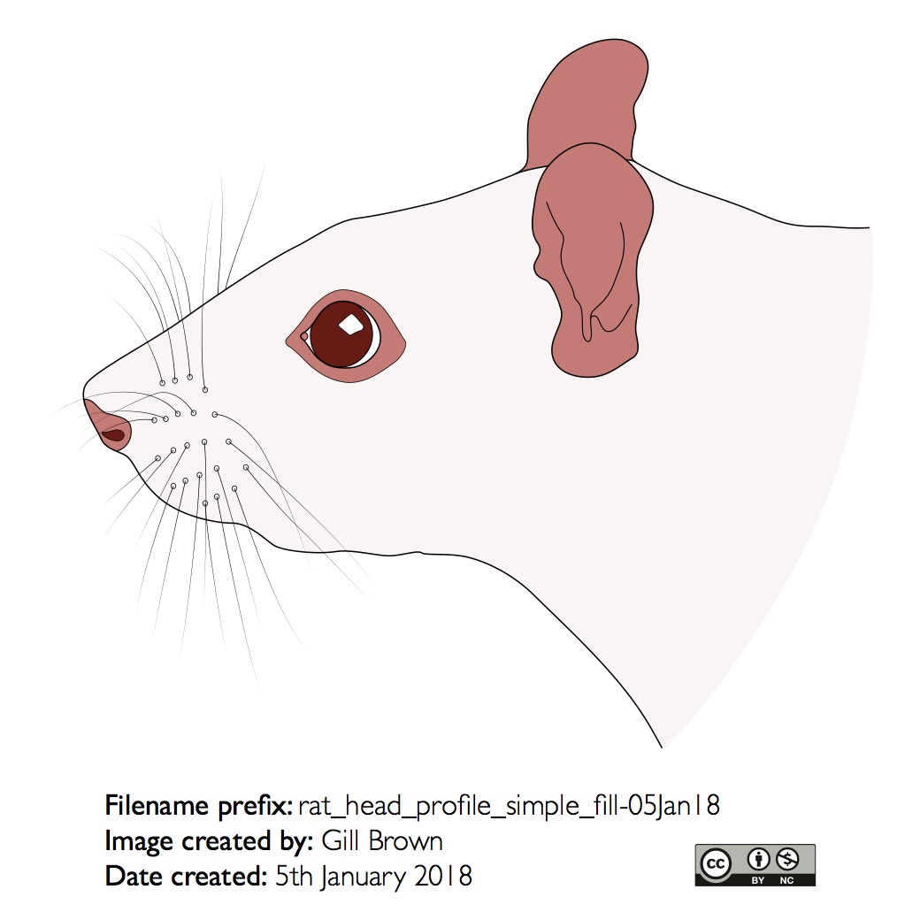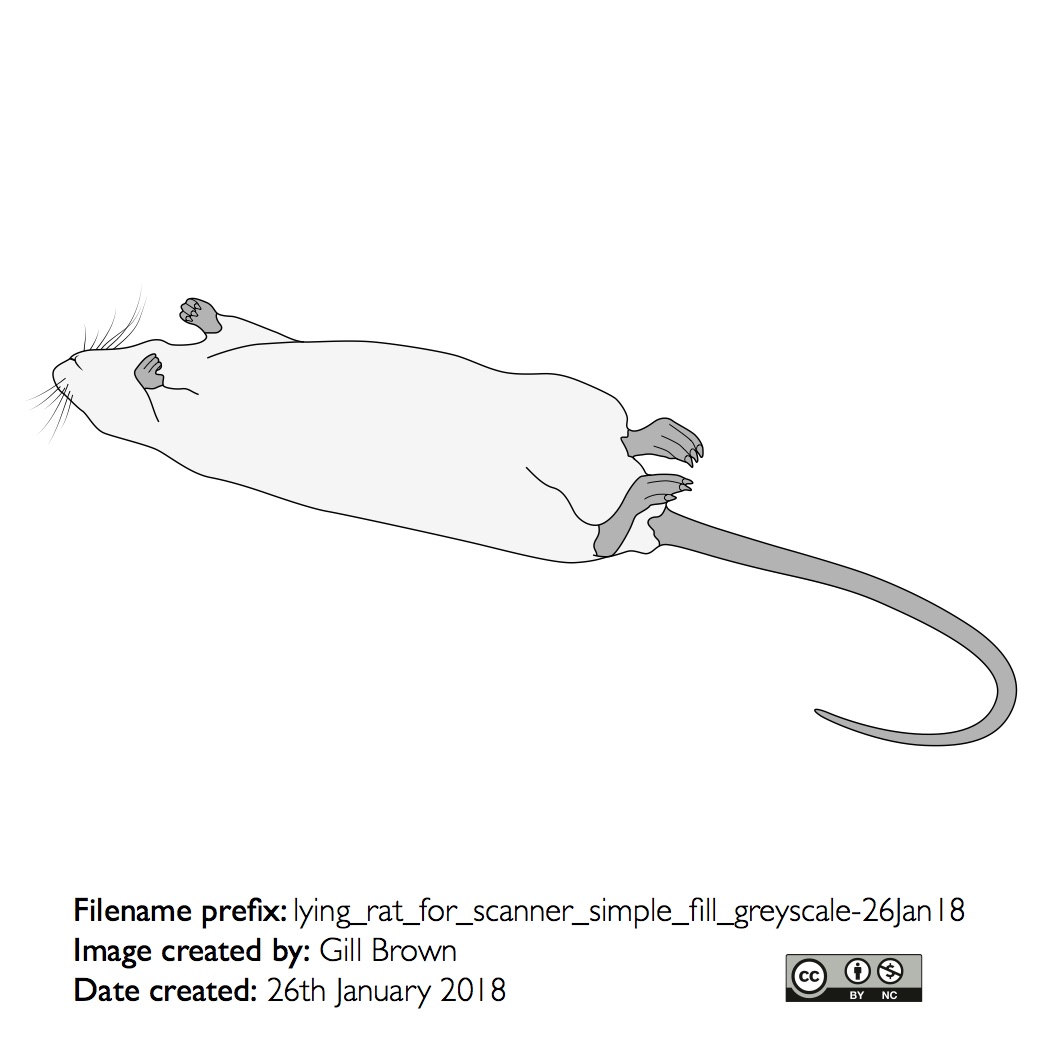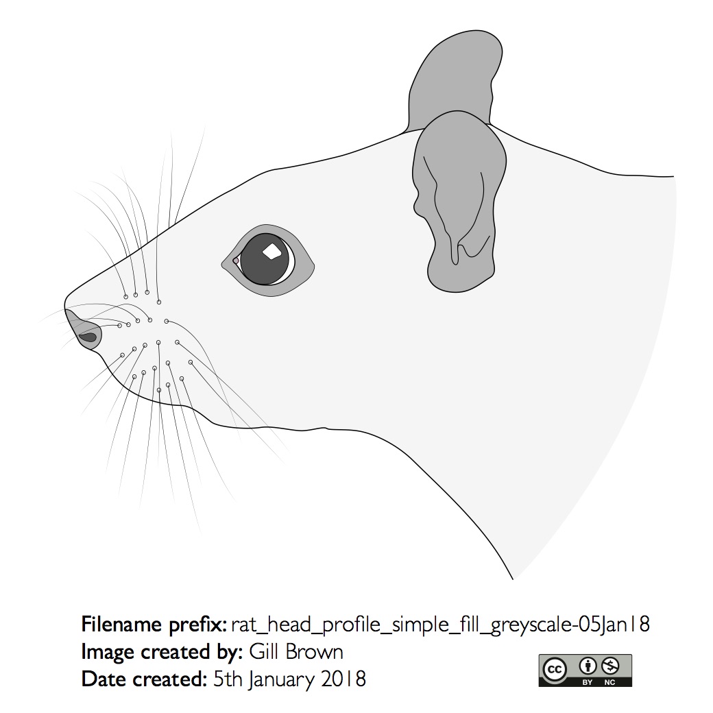 A selection of images of albino laboratory rats (in colour, greyscale and outline) in a variety of poses.