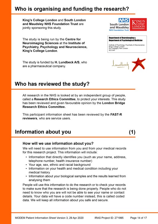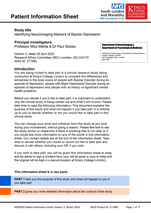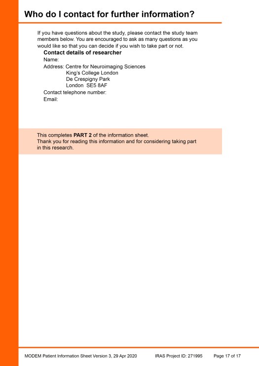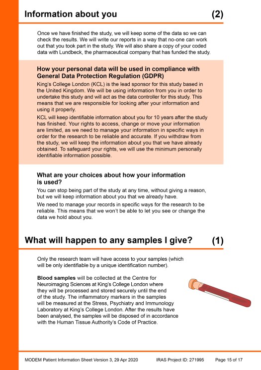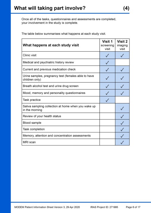 The completed example Patient Information Sheet (PIS) was created as an A4 document and all of the pages are shown here. A pdf file of the example PIS can also be downloaded (3.2Meg file size) via this link: