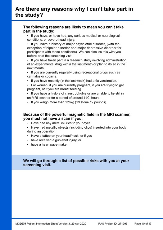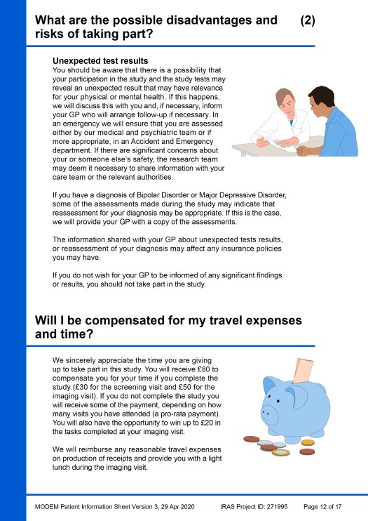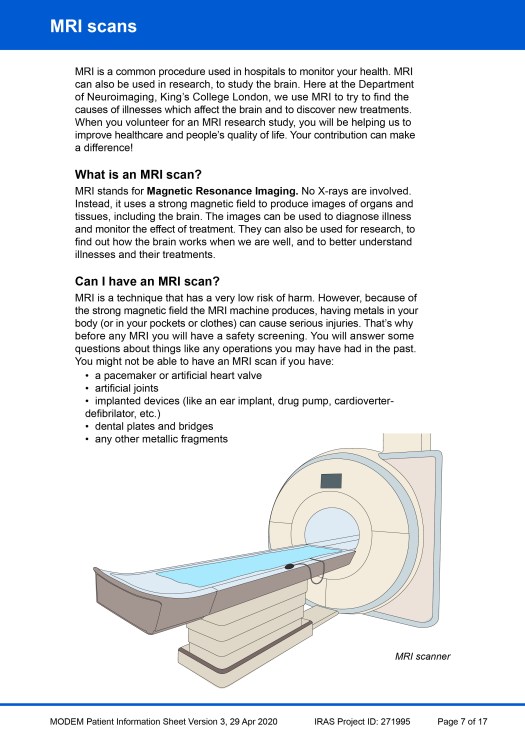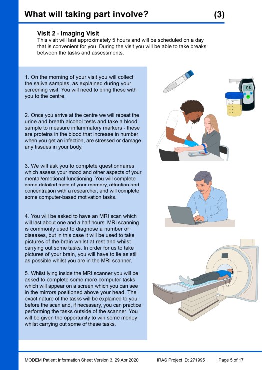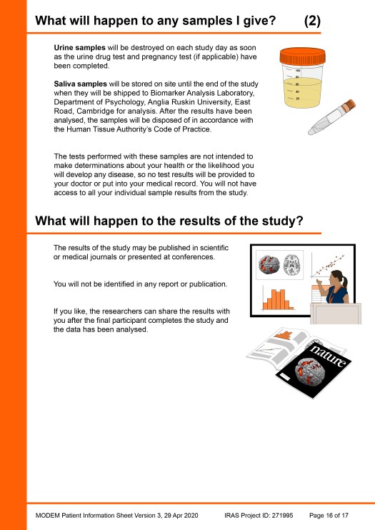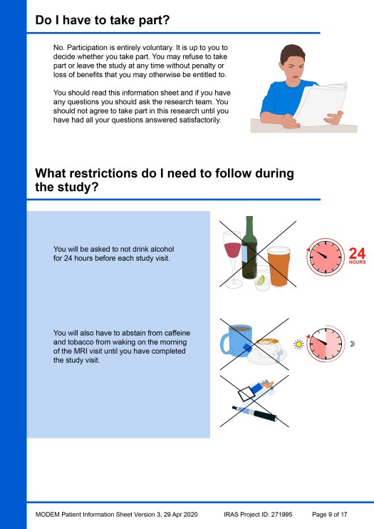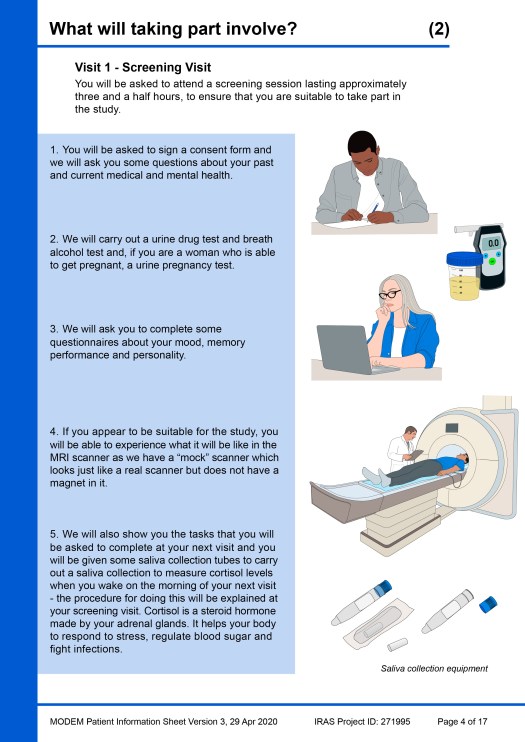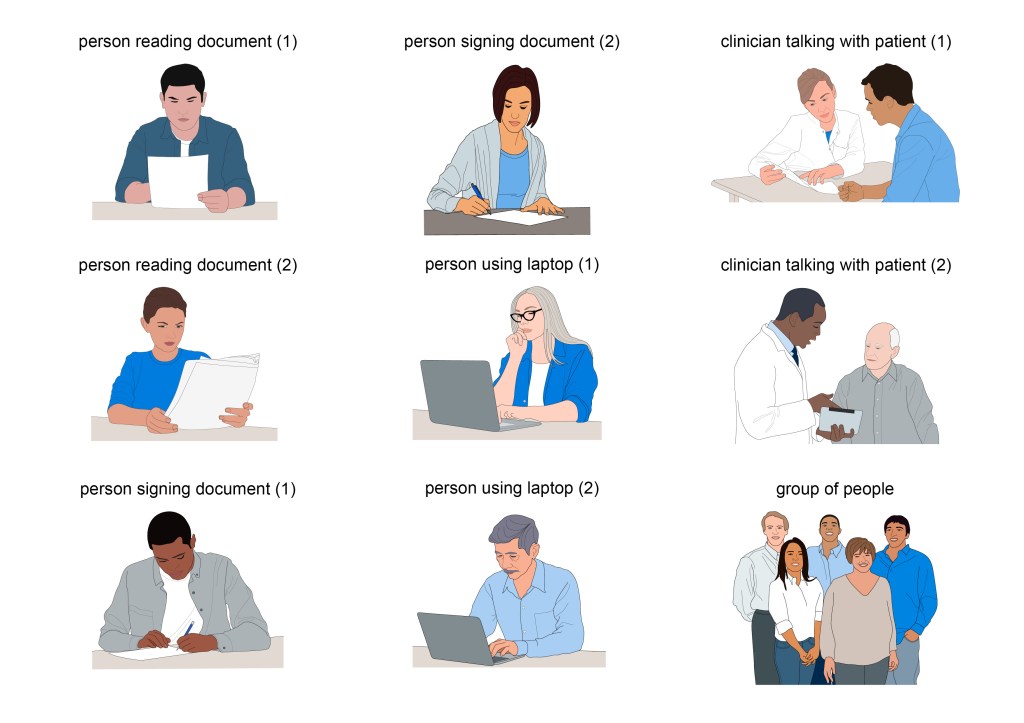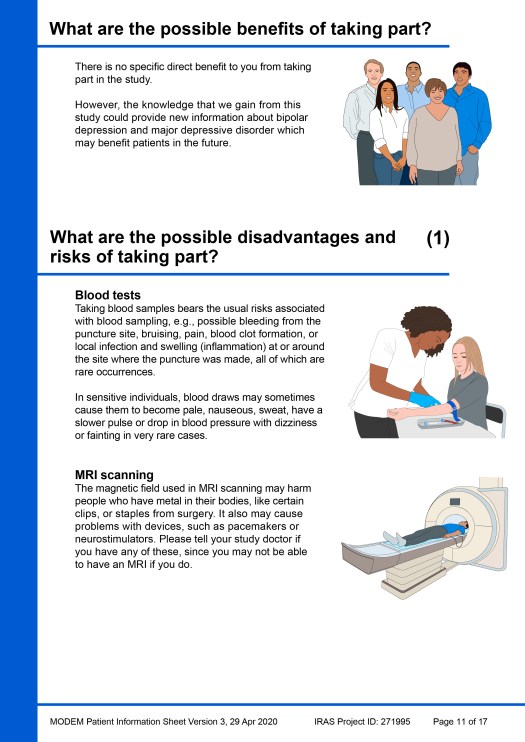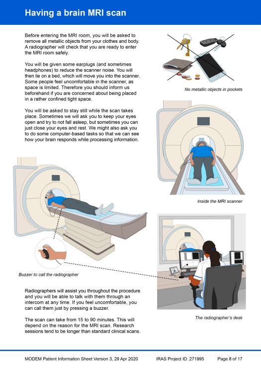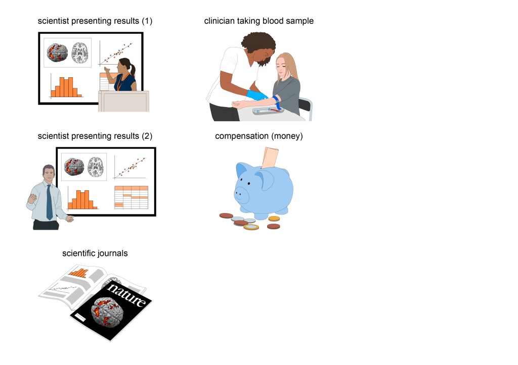 Beneath the example PIS pages, another image gallery shows a ‘catalogue’ of all the visual elements that were created during the project for use in this, or any other, PIS. Individual images of the elements have also been added to the main Image Gallery webpage in four portfolios: Patients & clinicians, MRI scanning, Taking samples / sampling equipment and Miscellaneous.